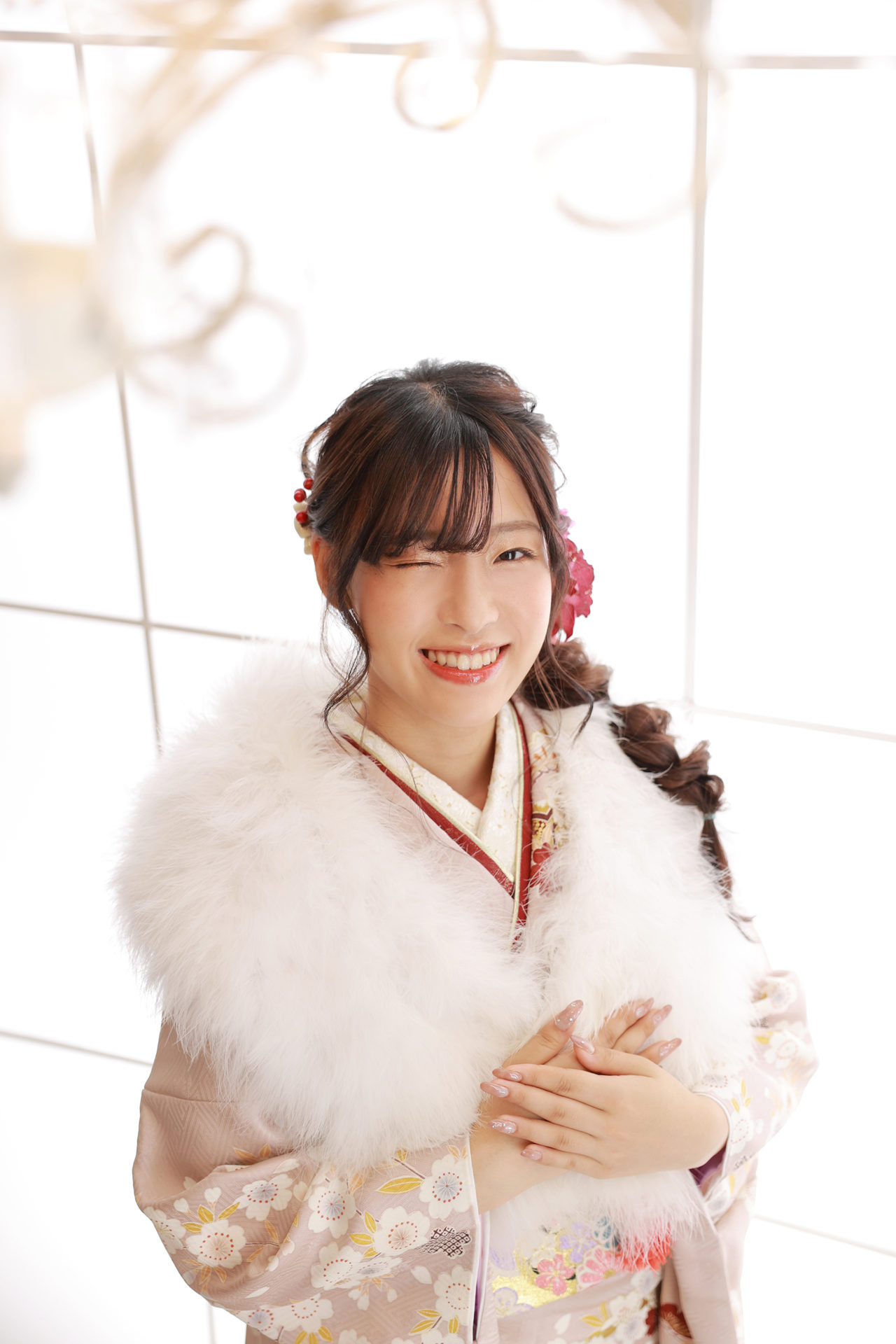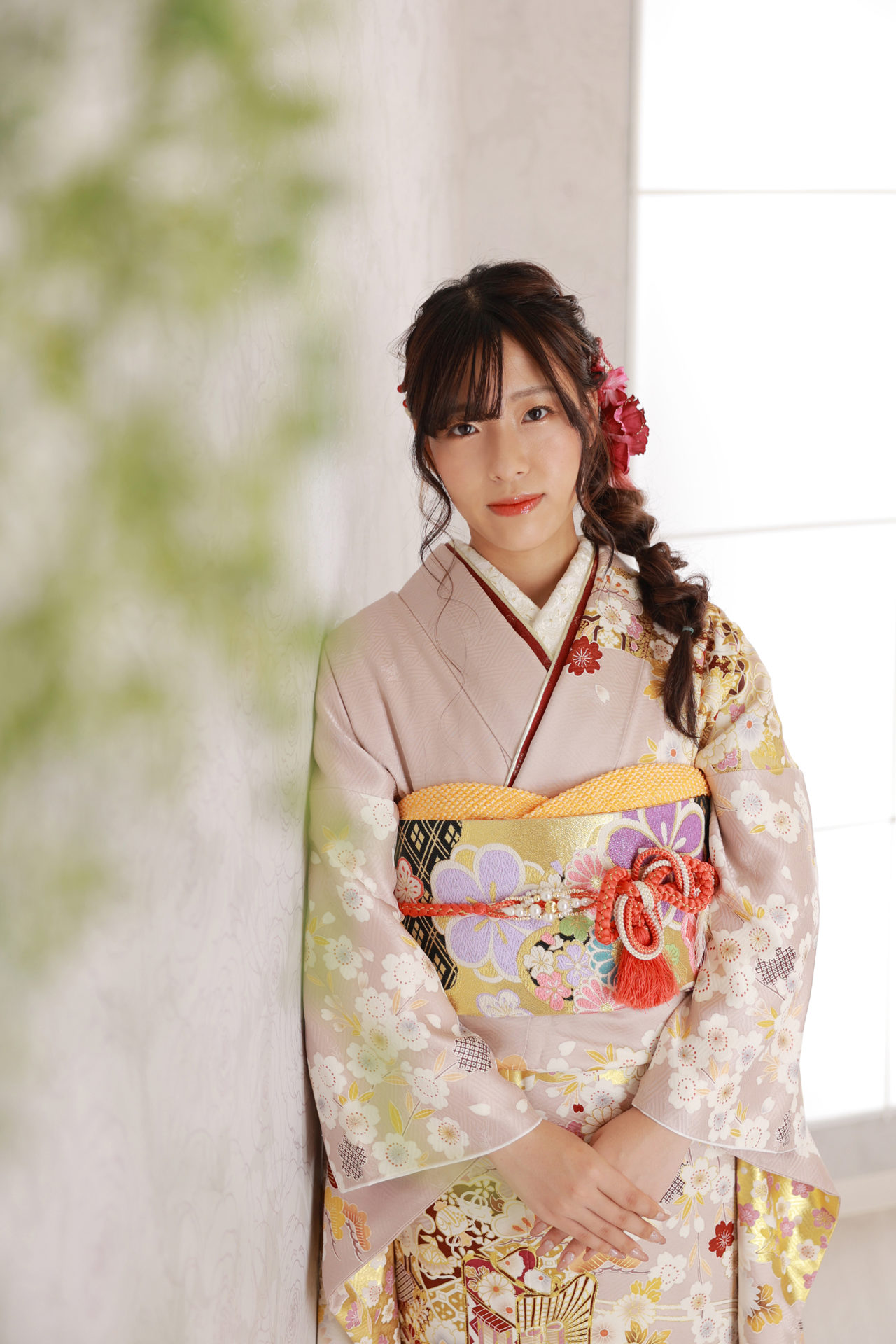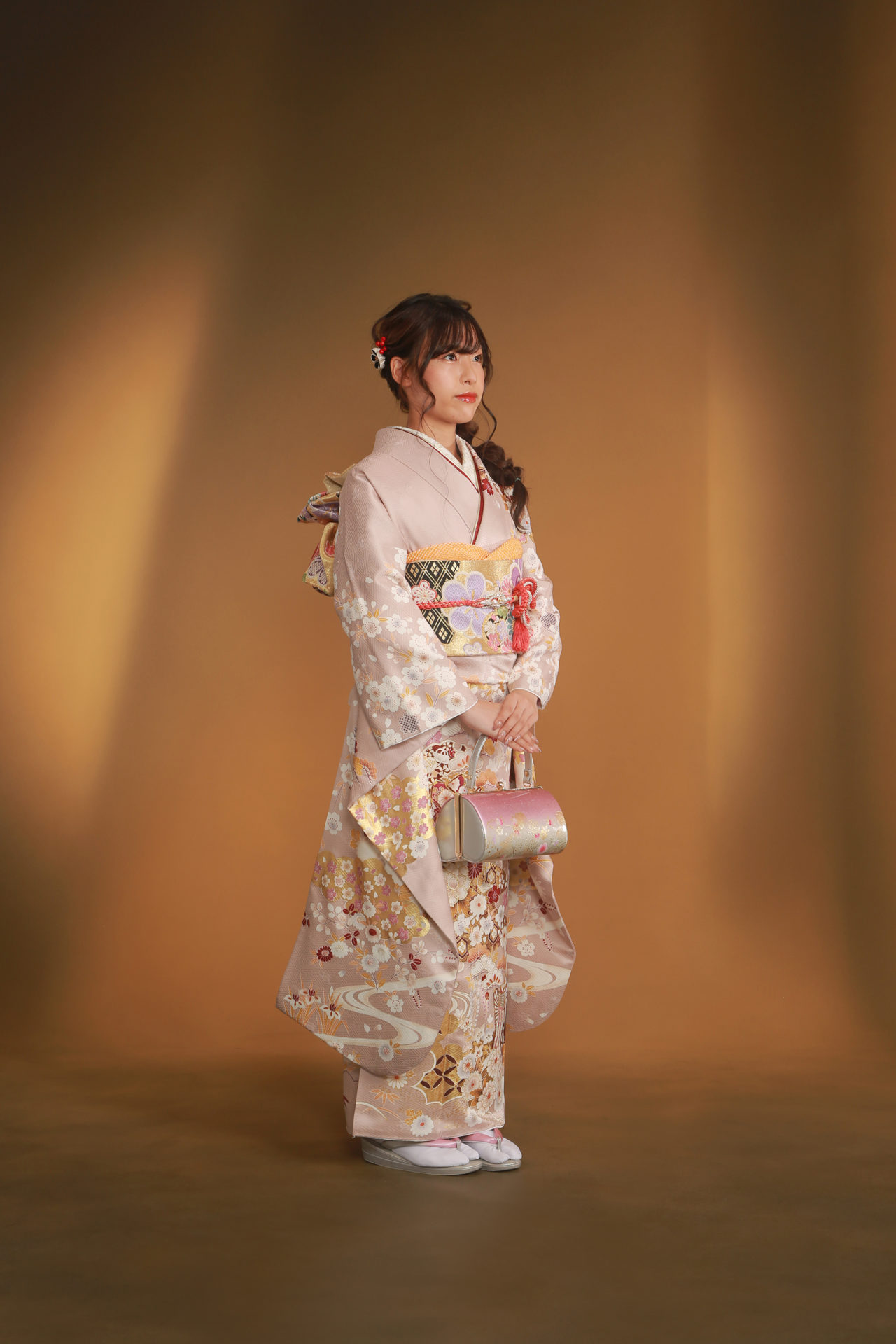 薄い紫にたくさんの柄が入った豪華なお着物💐