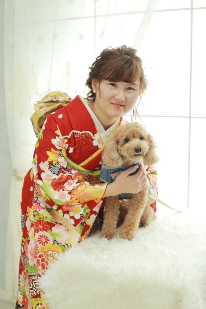 photo blog 2019年10月26日 大切なわんちゃんと共に♡成人式前撮り撮影 本日は成人式の前撮り撮影にご来店くださいました! お嬢様の大切な家族であるわんちゃんも一緒に撮影♡ わんちゃんもきっと家族の一員としてお嬢様の成人を喜んでいると 思いますよ♡