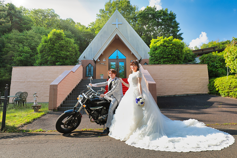 photo blog 2020年5月23日 お二人の理想を形に【小牧市】 婚礼のロケ撮影を「ラマーレ」さんで行いました。 ロケ撮影でもお二人のご希望をしっかり形に残します!新郎様のバイクに乗るスタイル、寄り添う新婦様斬新だけど素敵ですね♪ どうぞ末長くお幸せに….✨