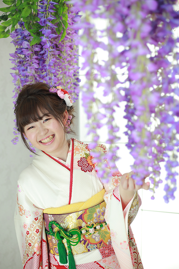 photo blog 2020年6月28日 ニコニコで成人式撮影【可児】 笑顔が爽やかな成人者様 白ピンクの可愛らしい色合いに緑の帯締めがいいアクセントカラーになりお似合いです♡ ご成人、誠におめでとうございます!!