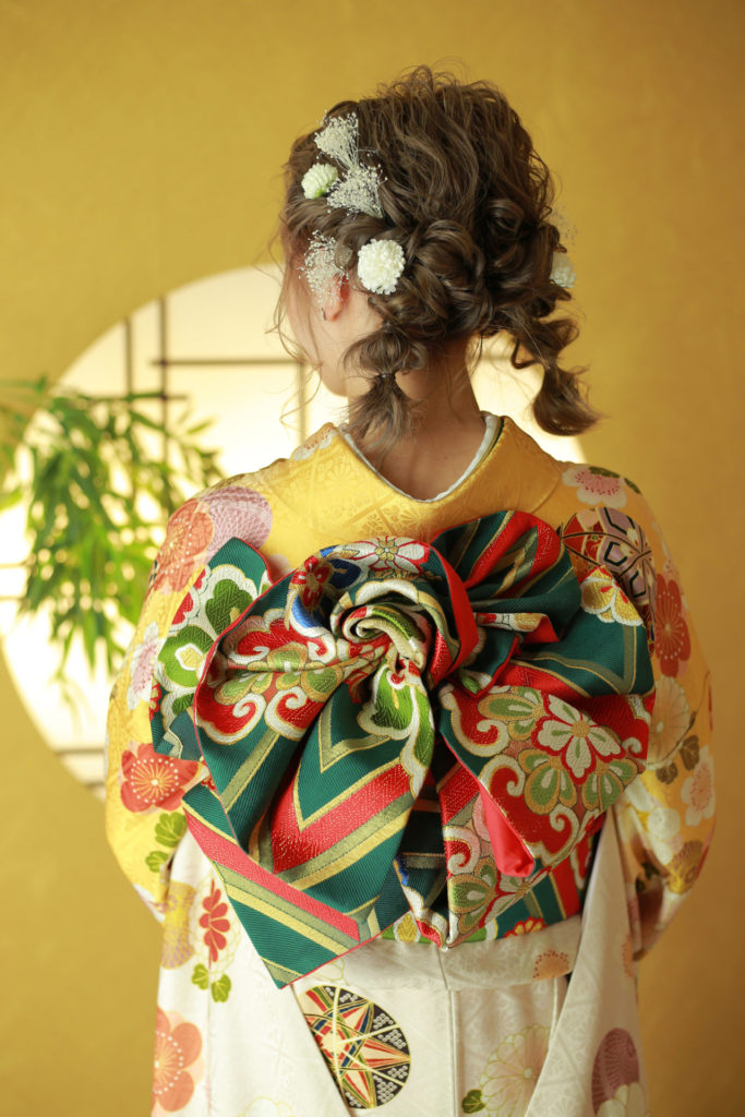 photo blog 2020年7月12日 おしゃれコーディネート♫【御嵩町】 淡い黄色に緑の帯がよく映える個性的なおしゃれコーディネート♡ ヘアスタイルもふたつ縛りで可愛くアレンジしました! この度はご成人、誠におめでとうございます。
