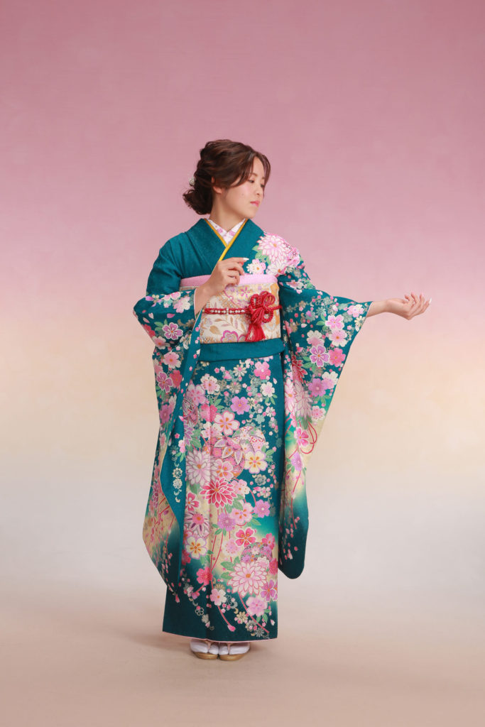 photo blog 2020年10月24日 20才の記念日【可児市】 成人式前撮り♪ 緑青の地色にピンクの花があしらわれた可愛らしいお振袖がよくお似合いです。 この度はご成人、誠におめでとうございます!