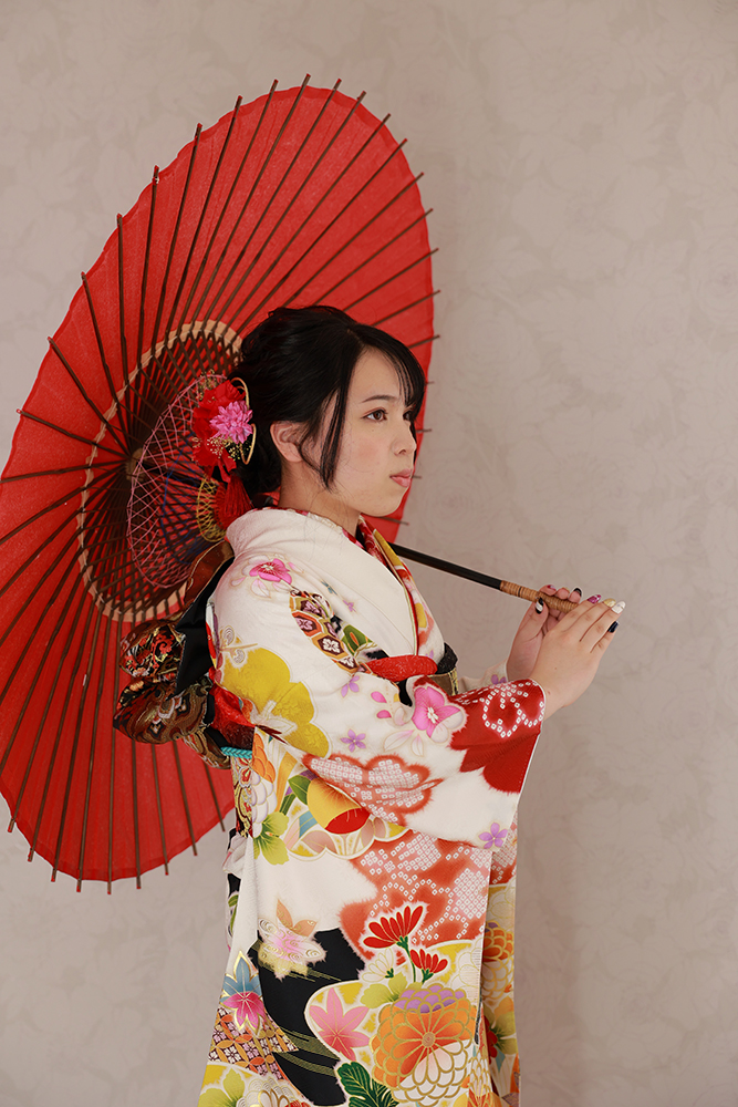 和風の傘も洋風のお花とも相性バツグンな可愛い振袖✨