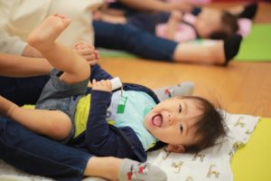 ママと赤ちゃんがヨガ中、お兄ちゃんたちはスタッフとおもちゃで元気よく遊んでいてママも安心^^
